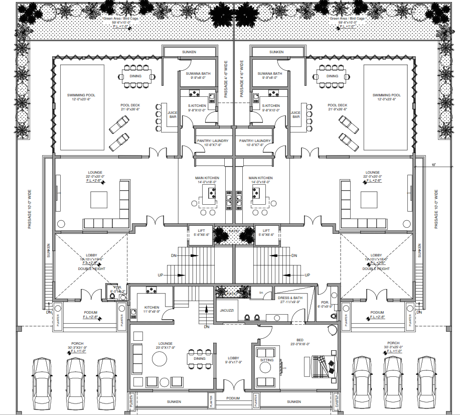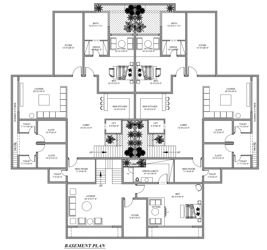 The basement plan is strategically designed for additional functional space such as parking, storage, entertainment areas, or utility rooms. It ensures structural safety, proper ventilation, and efficient space planning.